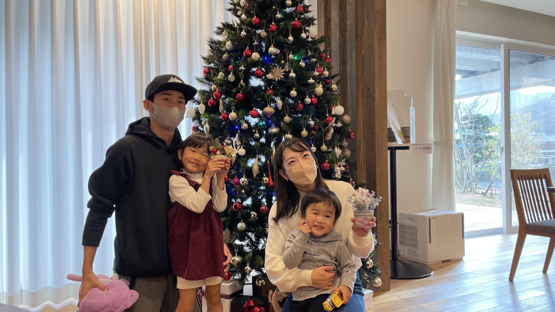 出来上がった後は、福岡西展示場に飾っている巨大ツリーの前で家族写真をパシャリ📷✨